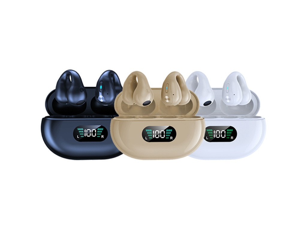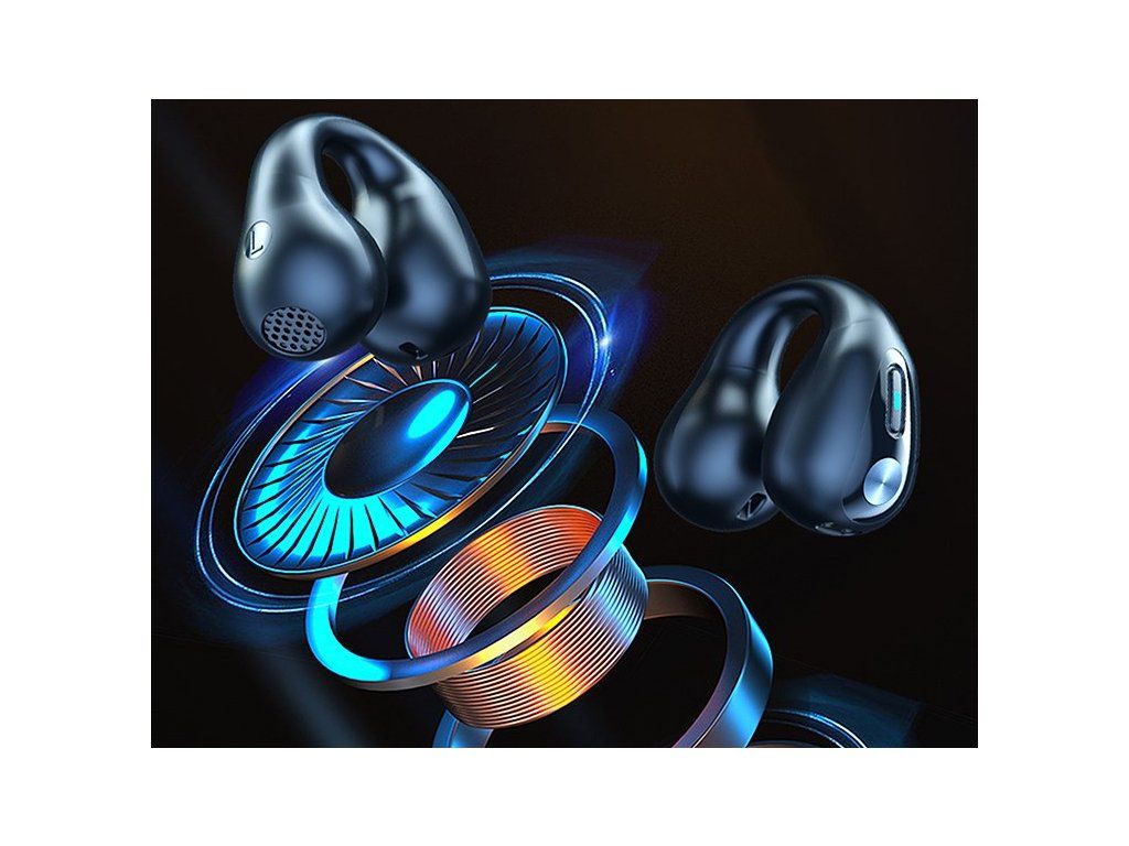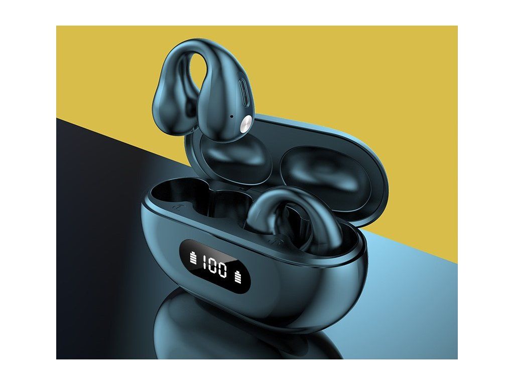 Căști wireless ProTech Q80 cu design inovator cu clemă EAR . Căști nu se fixează în ureche, ci se fixează direct pe lobul urechii. Astfel, vă puteți bucura de o mișcare liberă și fără griji și nu trebuie să vă faceți griji că vă cad căștile. Sunetul este transmis prin tehnologia Bone Conduction prin oasele obrazului direct în urechea medie. Datorită acestui fapt, căștile sunt blânde cu urechile și, în același timp, sigure, deoarece vă permit să auziți toate sunetele din jur în timpul ascultării.