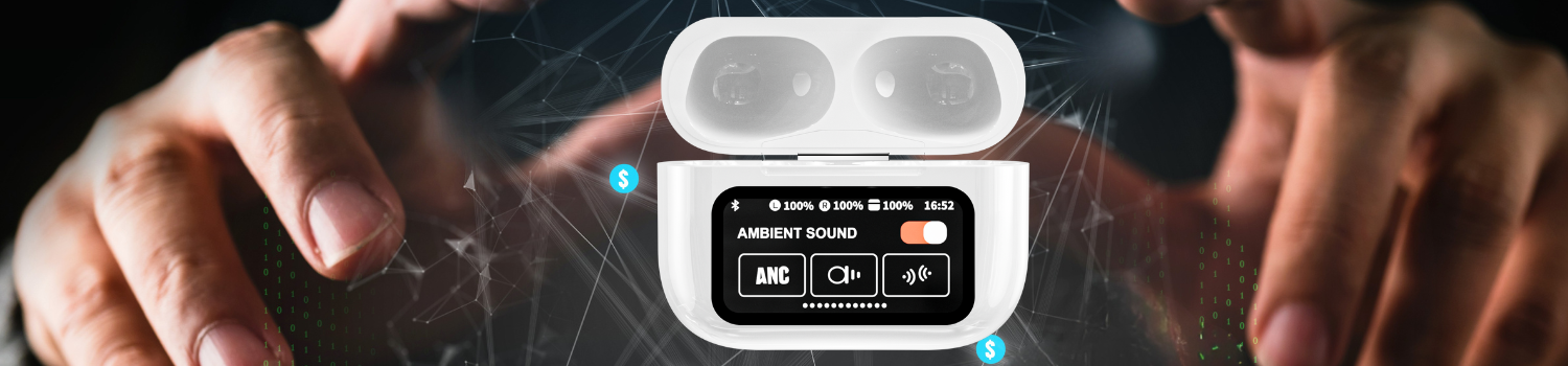 Căști wireless FIRO A9 Pro cu tehnologie ANC / ENC pentru eliminarea zgomotului ambiental și ascultare neîntreruptă a muzicii. Cutie de încărcare cu ecran tactil pentru control convenabil al funcțiilor.