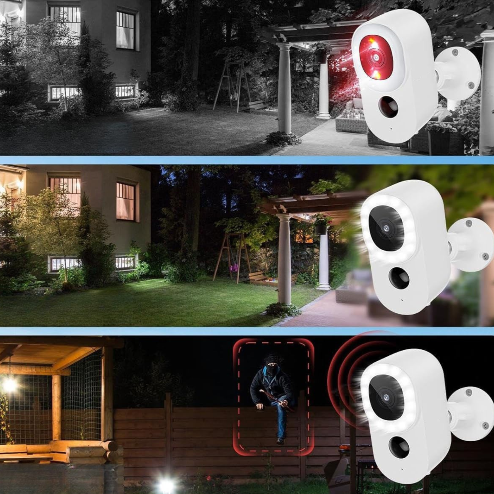 Pentru iluminarea nocturnă, camera utilizează 2 diode infraroșii discrete și 14 diode cu lumină albă. Cu acest echipament, poate înregistra imagini alb-negru (IR) și imagini nocturne complet color. Raza de vizualizare nocturnă este de până la 10 metri chiar și în întuneric complet, la o limită de 0,1 Lux de lumină ambientală. În aplicația CloudEdge, puteți seta unul dintre cele 3 moduri de vizualizare nocturnă care se potrivește cel mai bine nevoilor dvs.:
