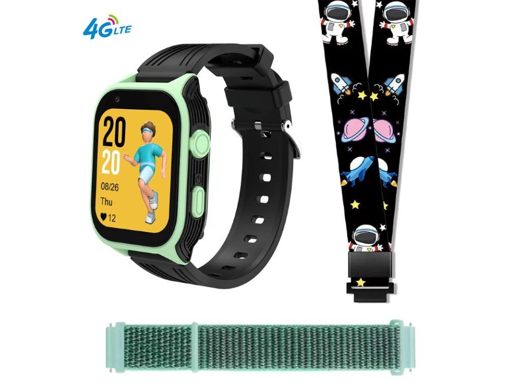 4G LTE ceas smartwatch pentru copii cu GPS PulsGo KIDS Cool D8 cu două curele și un șnur pentru agățare confortabilă la gât. Carcasă ușoară și rezistentă creată având în vedere dimensiunea încheieturii copiilor cu vârste cuprinse între 5-12 ani.