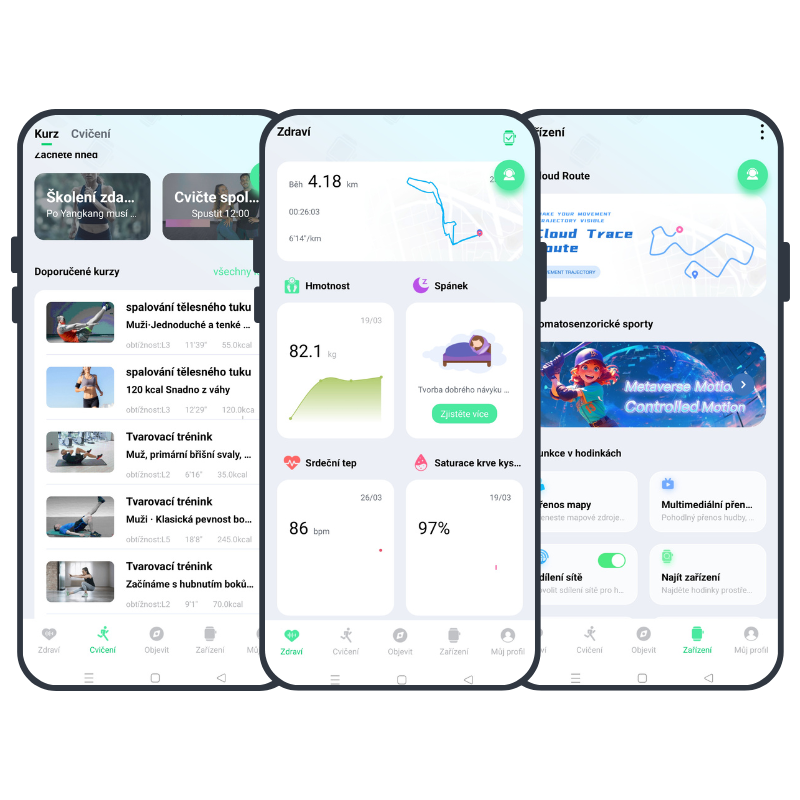 Pentru exerciții fizice regulate, puteți găsi o serie de cursuri de exerciții fizicepe ceas și în aplicația mobilă. De la scurte întinderi, postura corectă a spatelui, modelarea corpului, întărirea mușchilor interni până la pierderea în greutate și creșterea masei musculare.