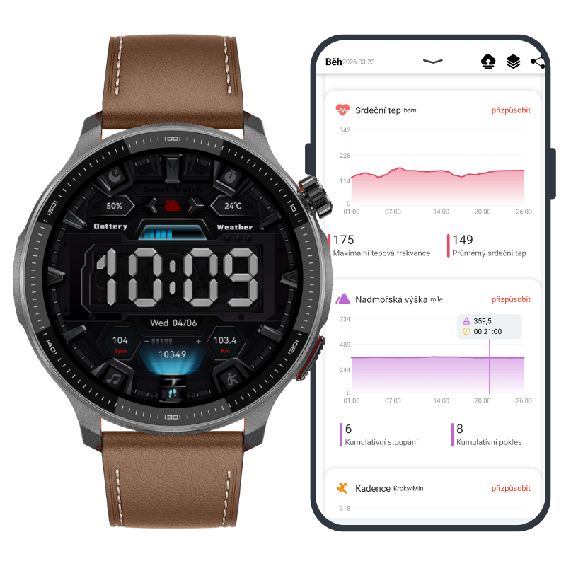 Aplicația vă permite să descărcați date cartografice complete, de exemplu pentru întreaga Republică Cehă sau doar pentru anumite zone, cum ar fi zonele muntoase. Datorită acestui fapt, datele hărților ocupă o capacitate de stocare mai mică, care poate găzdui apoi mai multe melodii sau videoclipuri. Ceasul EVOLVE G6 Ultra este mereu gata să descopere locuri noi și oportunități sportive alături de tine.