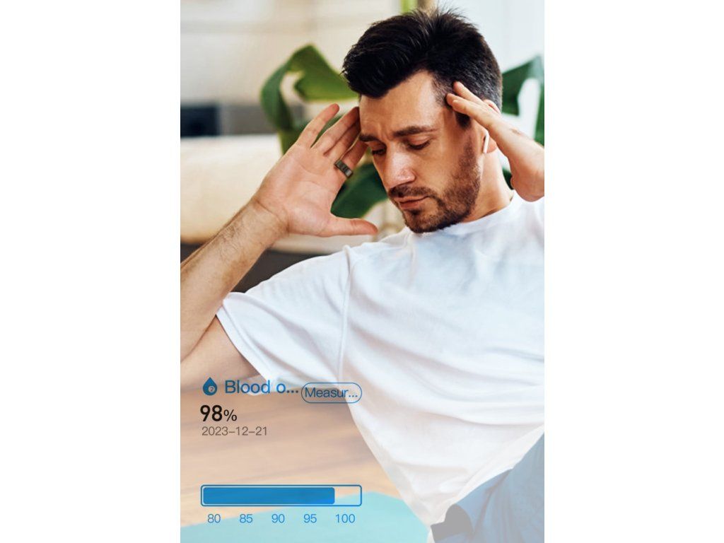 Inelul inteligent vă permite să începeți oricând o măsurare manuală a cantității de oxigen din sânge. Când sunt pornite modurile sportive, măsurarea cantității de oxigen din sânge are loc automat la un interval de 5 minute.