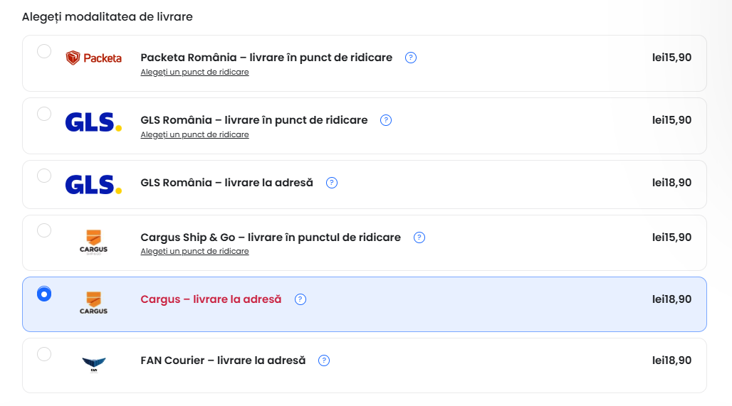 - livrare la punct CARGUS (15,9LEI)