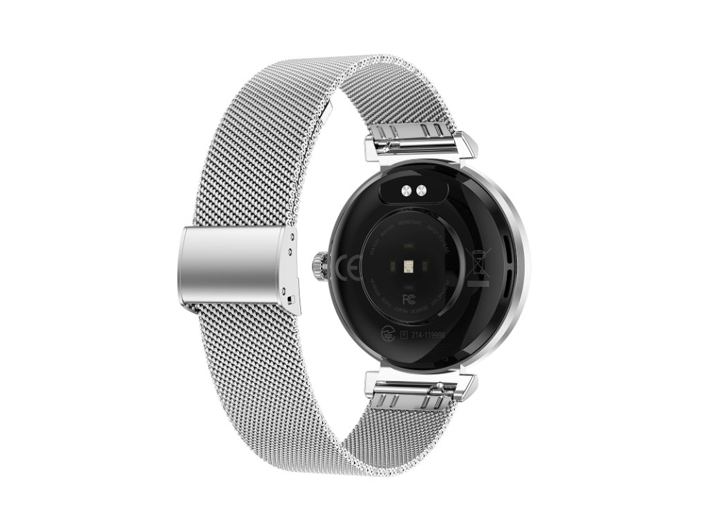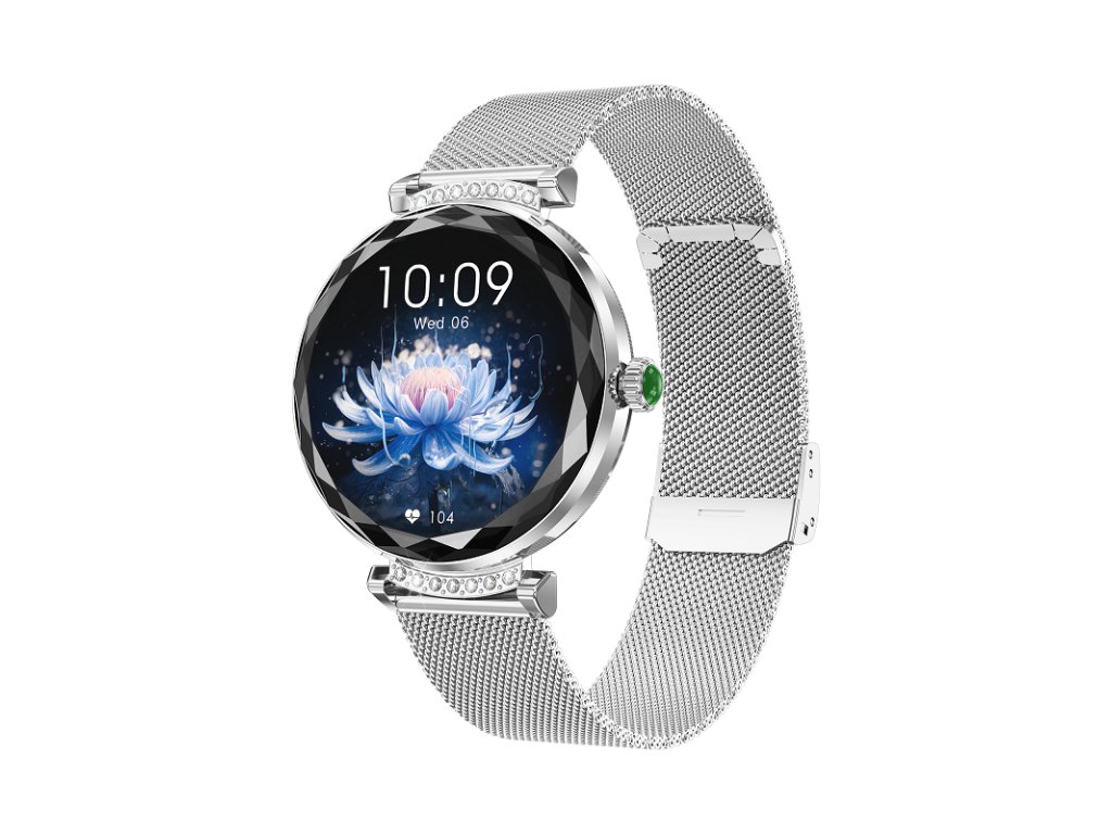 Ceas inteligent LUMINA N7 Luna creat pentru femei. Carcasă metalică ultra-subțire, completată de un afișaj AMOLED, o curea fină din oțel și o coroană decorată.