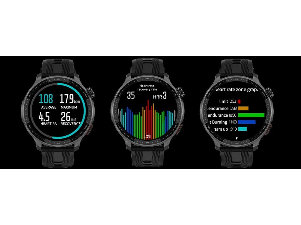 În modurile sportive ceas , acestea activează automat măsurarea continuă a ritmului cardiac și a oxigenării sângelui (saturației oxigenului din sânge). Zona frecvenței cardiace determină dacă vă încălziți, ardeți grăsimi sau supraîncărcați deja organismul. Nu trebuie să fii expert pentru a înțelege cum stai. În timpul mișcării, poți vedea pe o scală clară cât de mult trebuie să împingi sau, dimpotrivă, să relaxezi. Trebuie doar să urmărești culorile: