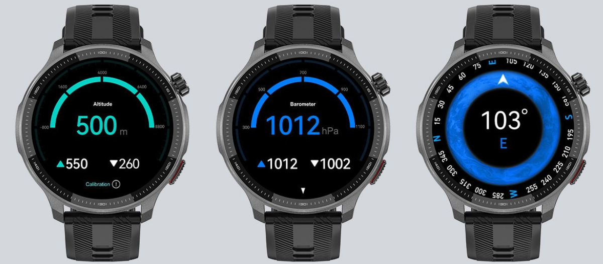 Indiferent dacă vă pregătiți să cuceriți vârfurile munților, să vă plimbați prin natură sau să campați, ceasul EVOLVE G6 Ultra are echipamentul care vă va ușura și vă va face călătoria mai plăcută. Printre funcții se numără busola, barometrul, măsurarea altitudinii și prognoza meteo. Puteți verifica valorile în ceas în mod continuu, iar altitudinea și evoluția acesteia sunt înregistrate automat de ceas pentru toate regimurile sportive în aer liber.
