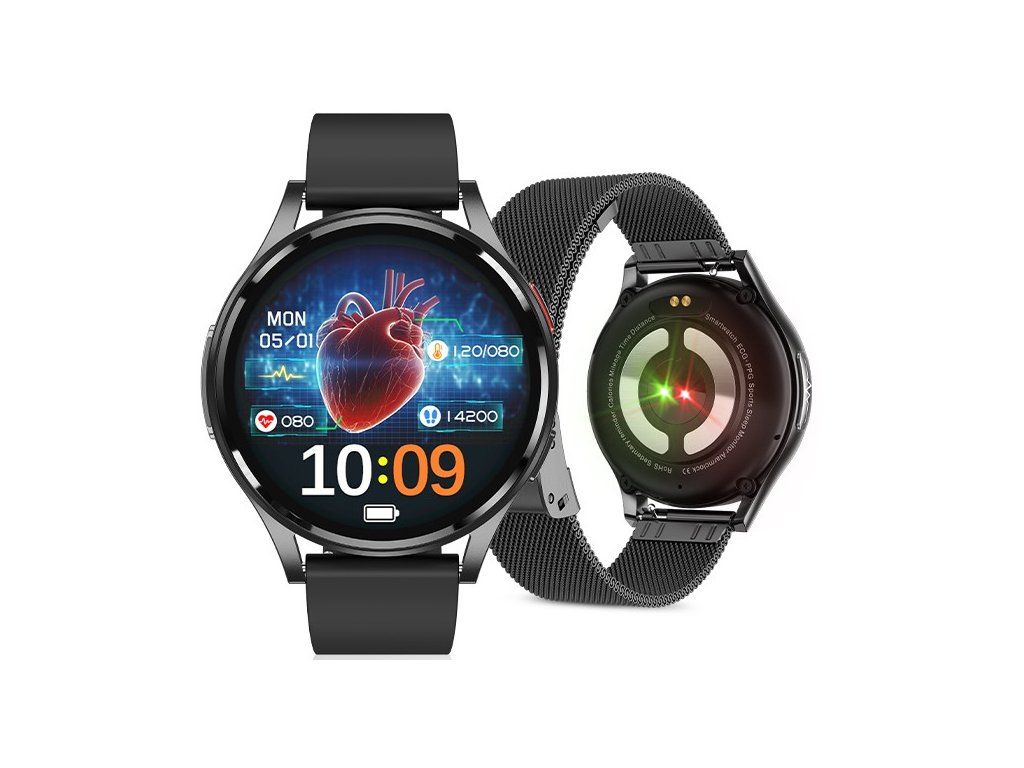 EKG (electrocardiogramă) - măsurarea activității electrice a inimii. Ceasurile inteligente PulsGo HEALTH GE30 utilizează cea mai recentă metodă de măsurare precisă a EKG prin senzori ECG (electrocardiografie) și PPG (fotopletismografie) pentru a crea un grafic detaliat al regularității și frecvenței ritmului cardiac. Pentru o precizie maximă, acestea combină măsurătorile printr-un electrod pe partea laterală a carcasei ceasului cu măsurătorile unui senzor optic pe partea inferioară.