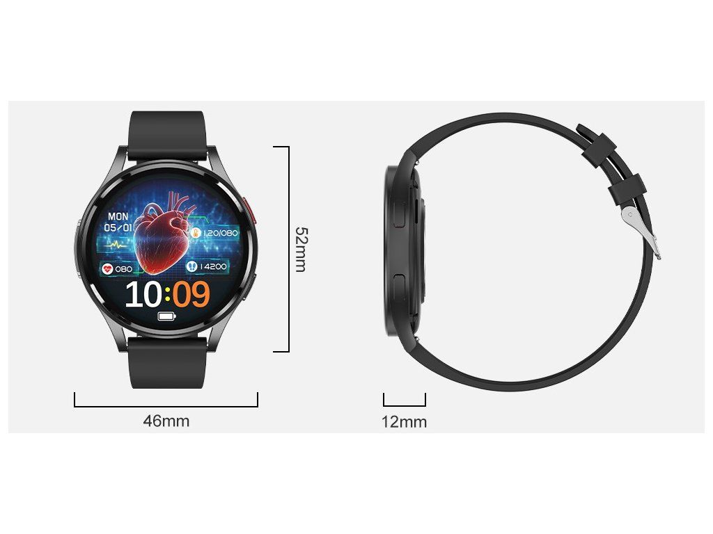 Ceasul inteligent PulsGo HELATH GE30 Fit permite monitorizarea avansată a activității electrice a inimii prin măsurare EKG monopolară (1-lead) cu înregistrare și evaluare a 13 neregularități ale ritmului cardiac. Pentru a începe măsurarea, este suficient să așezați degetul pe electrodul situat pe partea laterală a carcasei ceasului, închizând astfel circuitul electric și înregistrând activitatea cardiacă direct de la încheietură. Printre tipurile de neregularități se numără, de exemplu, ritmul sinusal accelerat sau lent, aritmia sinusală, extrasistolele și alte abateri. După finalizarea măsurării, datele sunt transferate în aplicația mobilă, unde puteți vizualiza raportul, inclusiv eventualele neregularități.