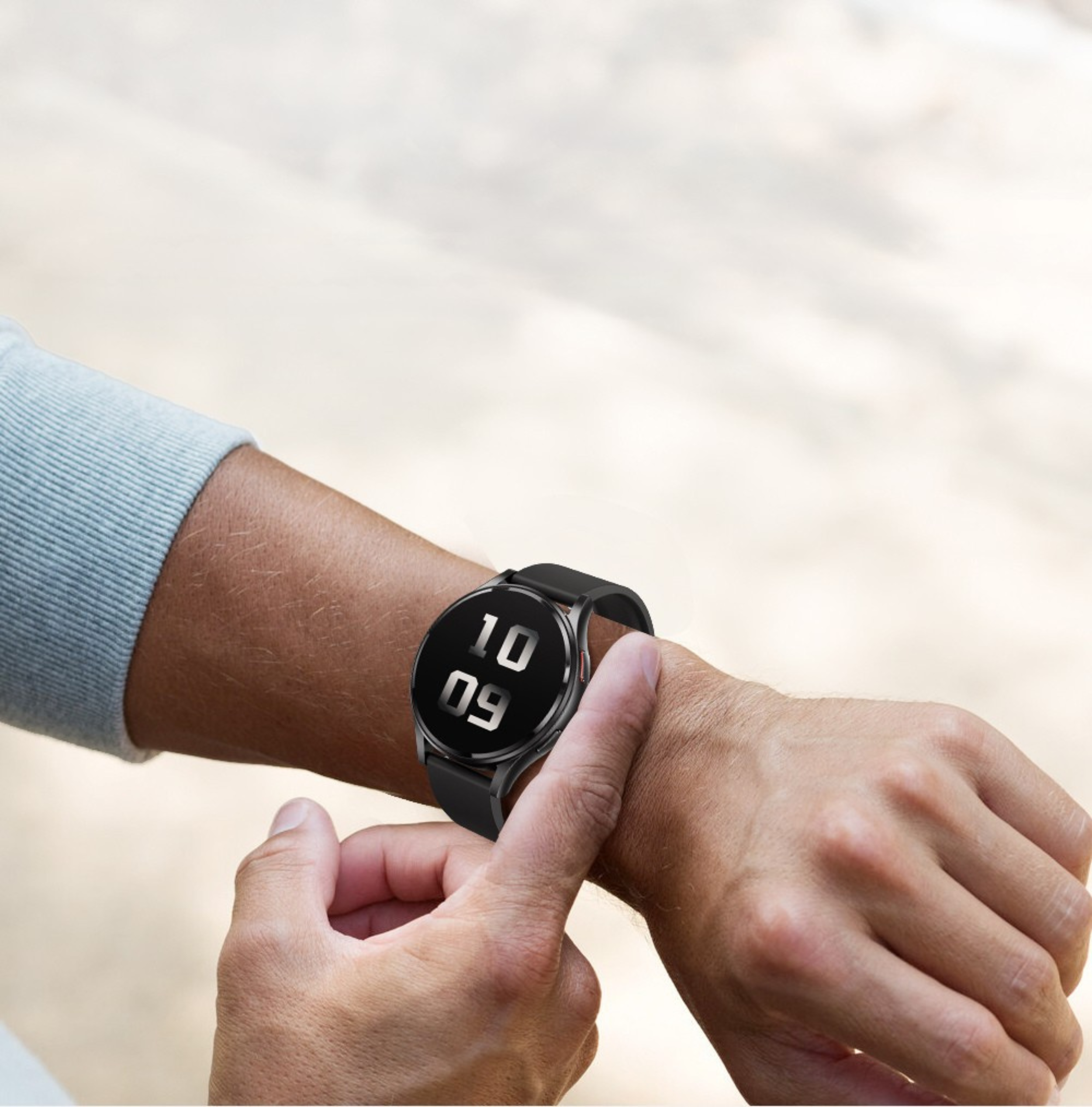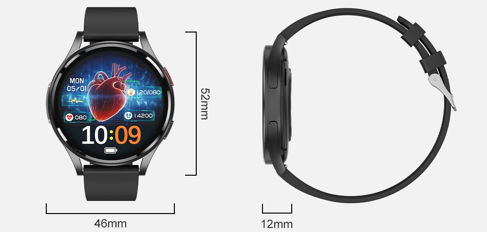 PulsGo HEALTH GE30 impresionează la prima vedere prin carcasa metalică ultrasubțire din aliaj ușor cu finisaj mat, care are o înălțime de 12mm și o greutate de doar 36g. În combinație cu cureaua de silicon, asigură confortul necesar și, în același timp, conferă un aspect elegant la încheietură. Brățara poate fi schimbată în orice moment cu alta de altă culoare sau material, adaptând astfel ceasul fiecărei situații și nevoi. Experiența vizuală, operarea confortabilă și o bună lizibilitate în lumina directă a soarelui sunt asigurate de ecranul tactil AMOLED de 1,43" cu rezoluție de 466x466px și frecvență de reîmprospătare de 60Hz. Operarea ușoară și aspectul elegant sunt susținute și de perechea de butoane de control laterale.