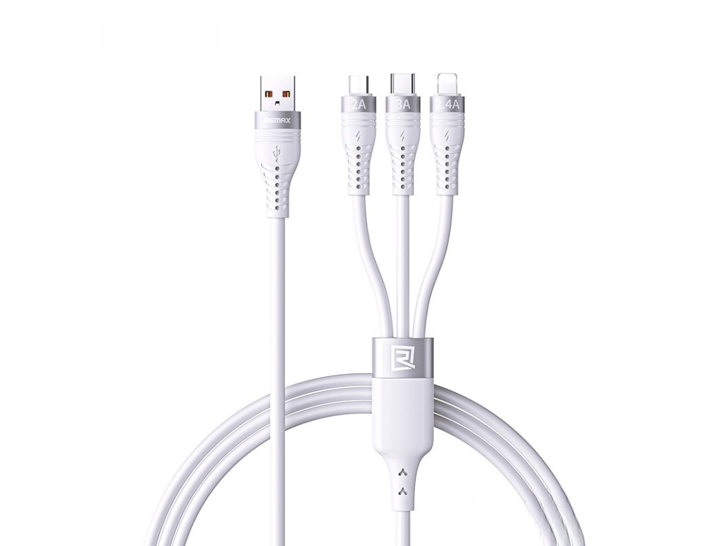 REMAX cablu multifuncțional de date și încărcare 3în1 / Micro USB + Lightning + USB-C / 3A, lungime 1.2M, culoare albă